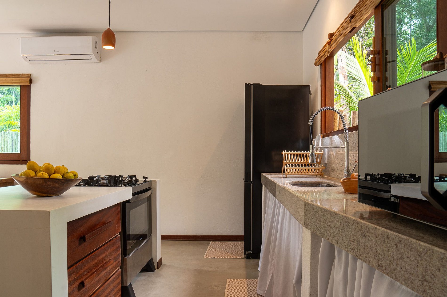 Located in the Trancoso Eco Residence Condominium, in the Estrada dos Macacos neighborhood. One of the most sought-after areas due to its natural preservation, while also being close to the Quadrado, beaches, and the town center. The condominium offers 24-hour gated security. It is less than 10 minutes from the Quadrado and the main beaches. Supermarkets, bakeries, and pharmacies are just a few meters away.