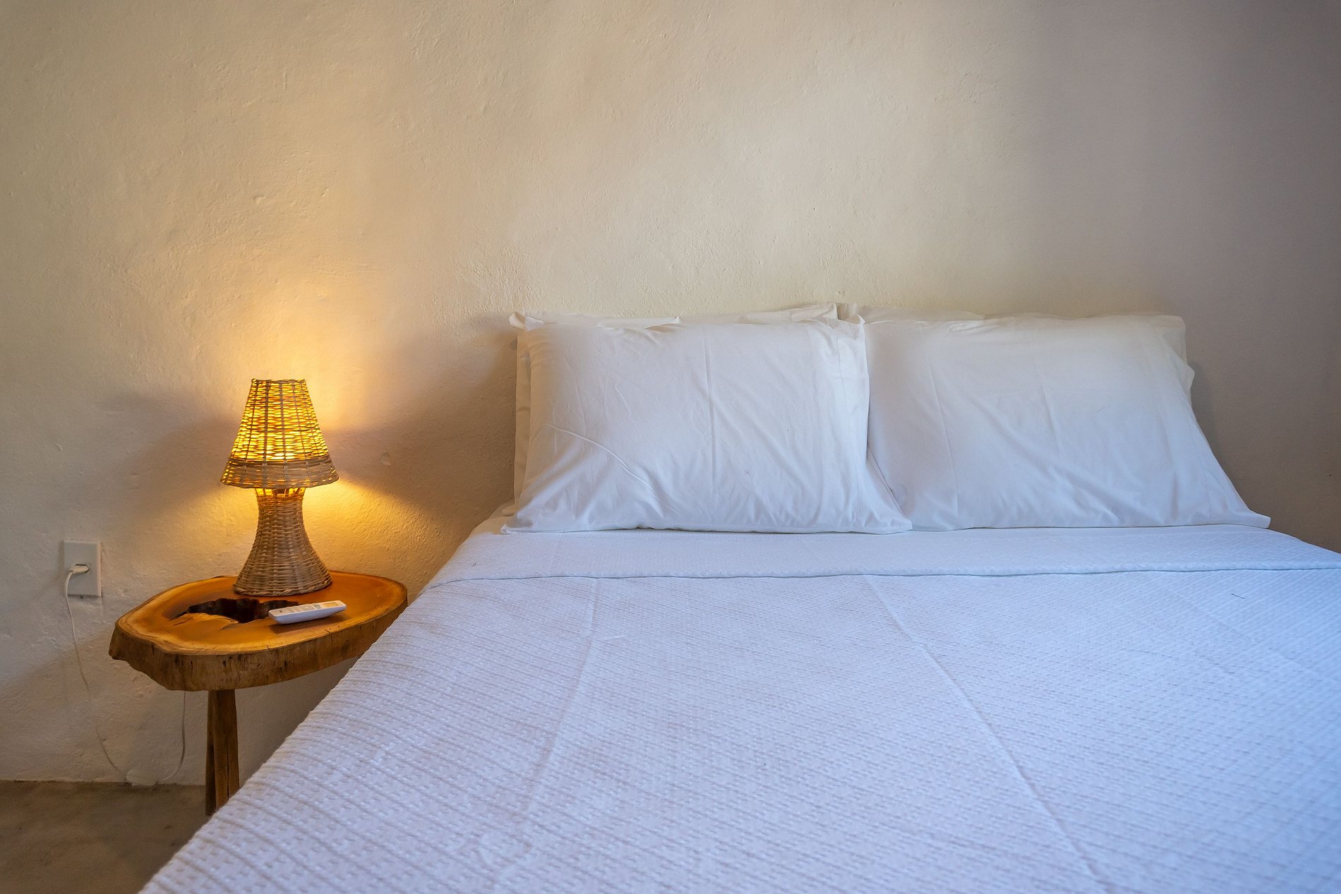 - 2 dormitorios, incluyendo una suite principal con cama king size y un dormitorio adicional con baño lateral y cama doble.