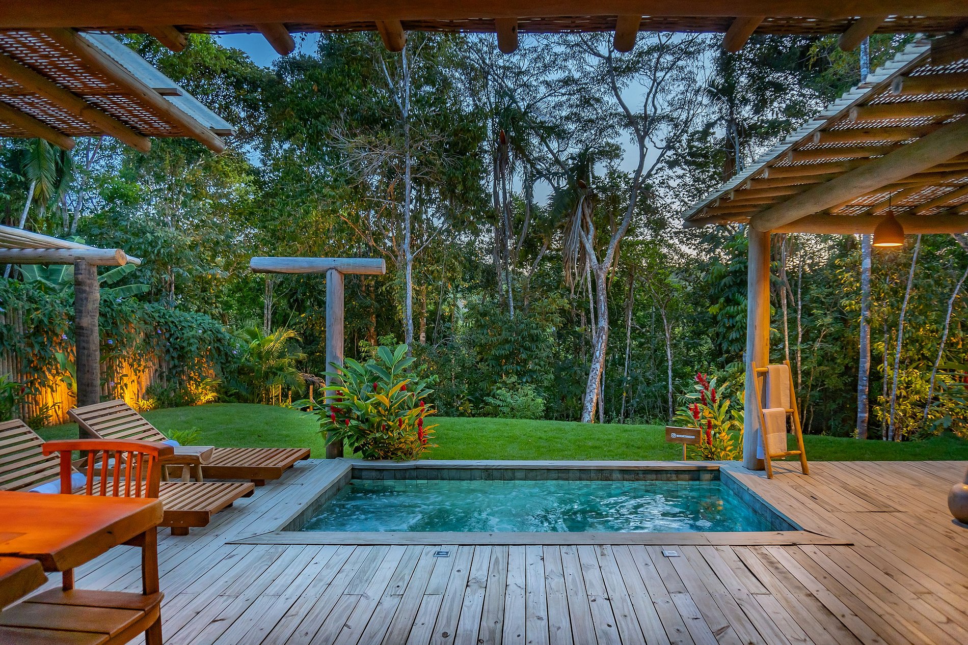 De nueva construcción, este espacio se inspira en la arquitectura rústica y elegante de las primeras casas de pescadores en Trancoso. Elementos autóctonos y artesanía local crean un ambiente único. Los muebles de diseño natural están hechos con materias primas del bosque y la fachada utiliza yeso de Santa Fe, el mismo revestimiento tradicional de la Igrejinha do Quadrado, hecho antiguamente con arena, agua salada y aceite de ballena.