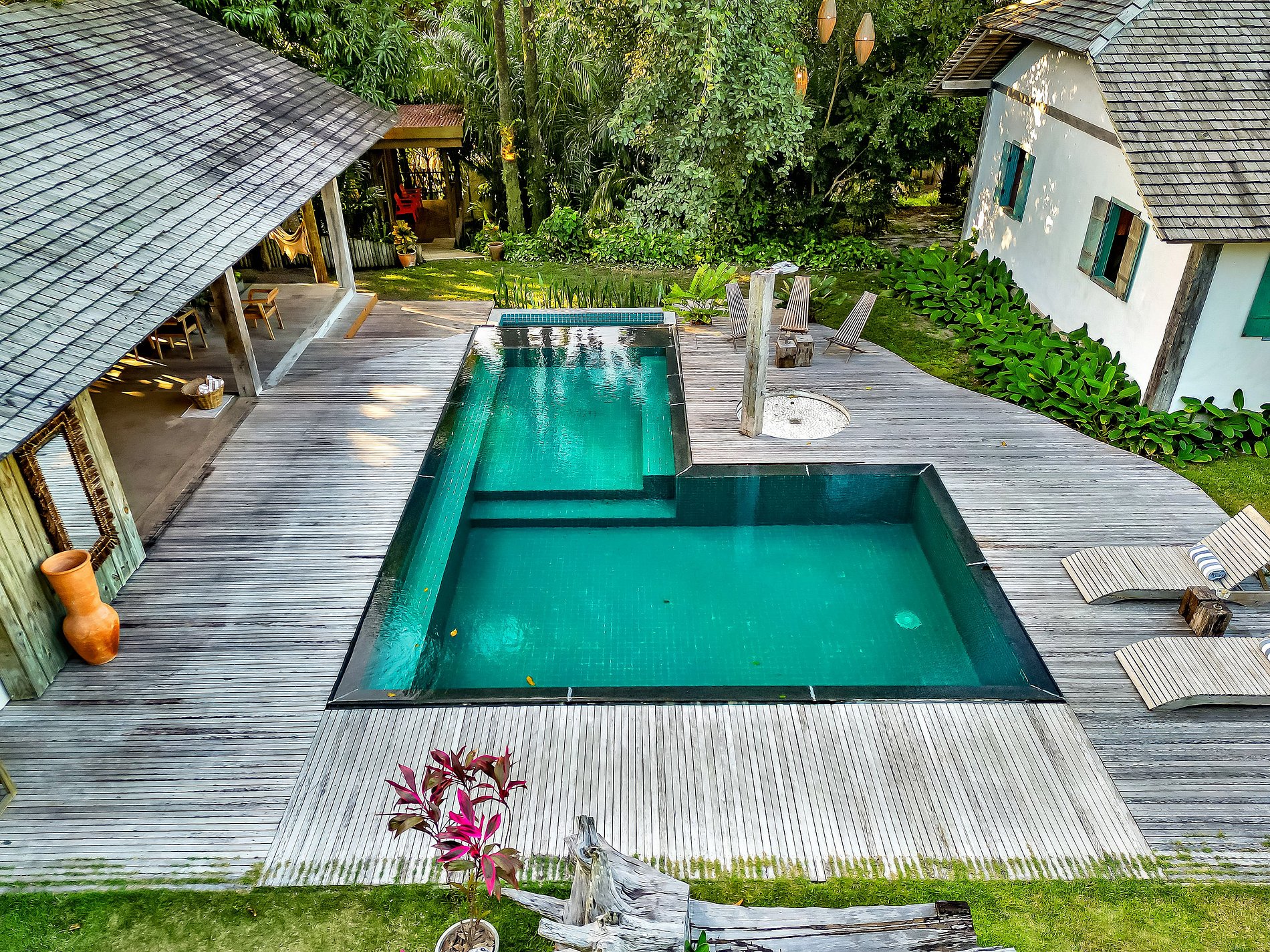 La Casa posee un toque especial; cada detalle fue realizado por artesanos locales con técnicas tradicionales. Toda la madera utilizada proviene del bosque atlántico, de una época en la que se extraía en el propio terreno. La distribución interna se adaptó para responder a las necesidades modernas. El espacio gourmet, integrado a la vivienda, sigue el mismo estilo y se adapta a los requerimientos de un hogar exclusivo.