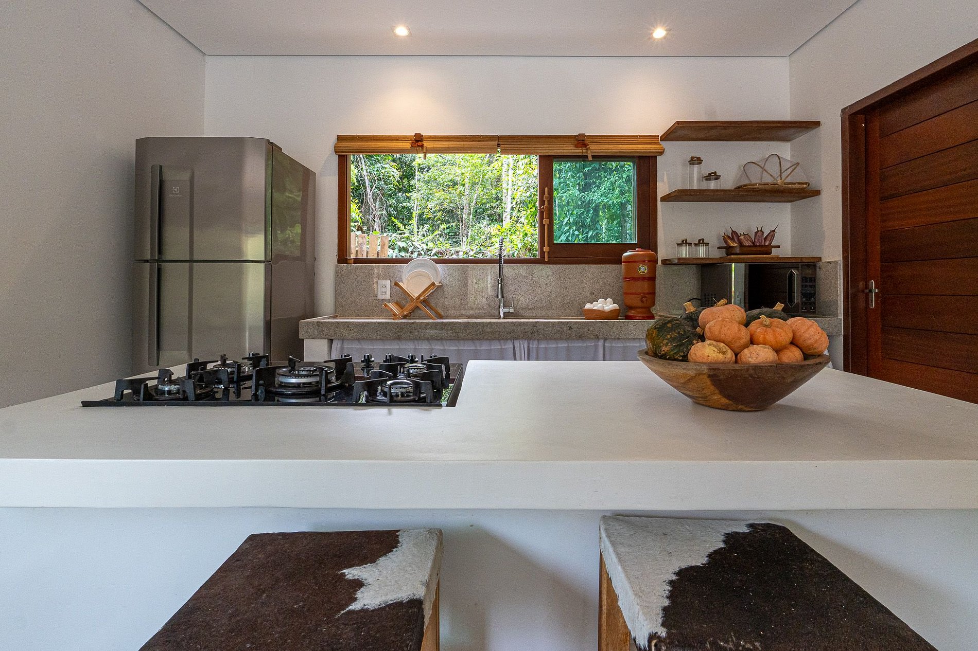 Localizada no Condomínio Trancoso Eco Residênce, no bairro estrada dos macacos. Um dos lugares mais valorizados, pela preservação natural e ao mesmo tempo muito próximo do Quadrado, praias e centro. Com portaria e segurança 24hrs. A menos de 10 minutos do quadrado e principais praias. Supermercados, padarias, farmácias estão a poucos metros.